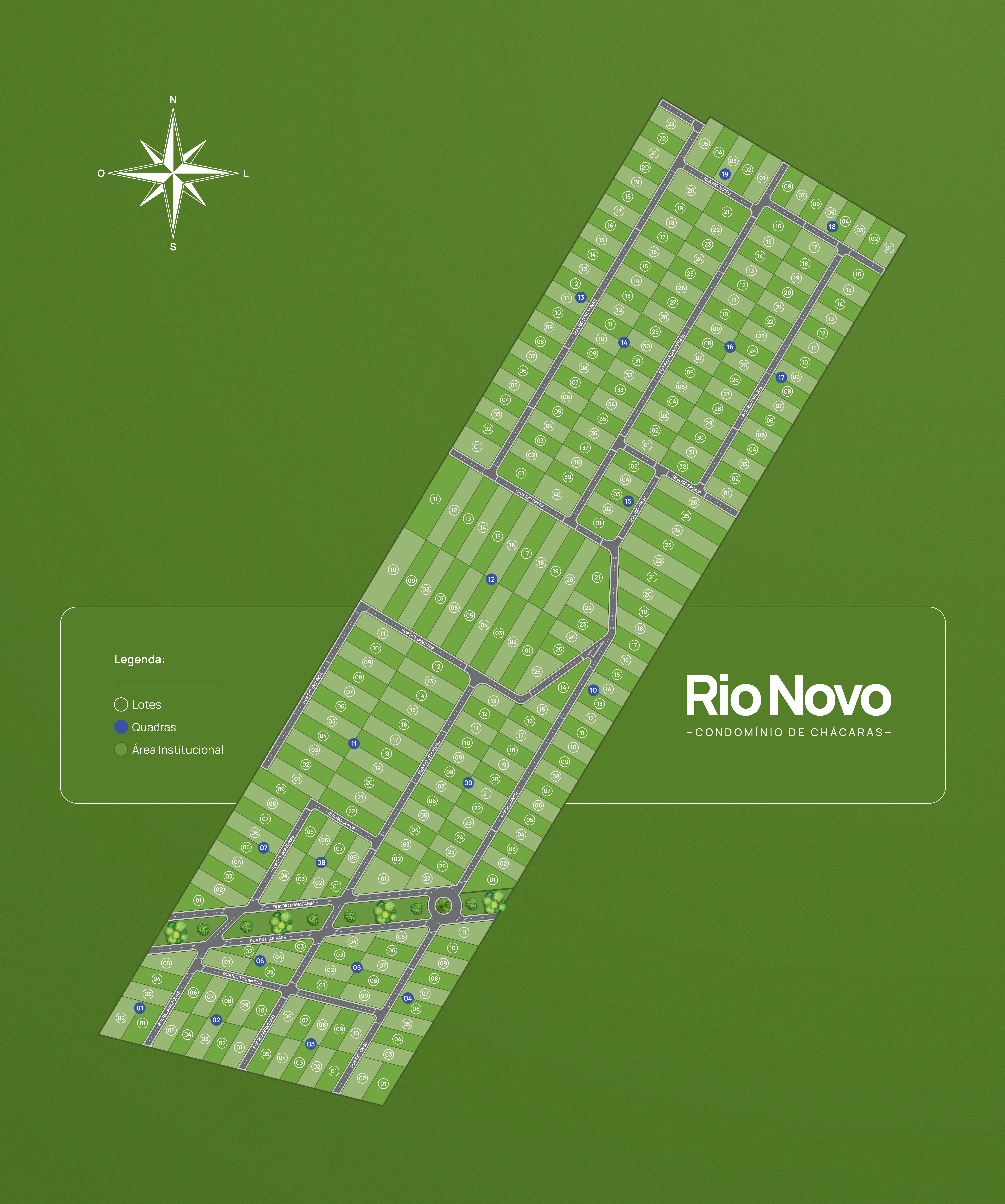 | ✔ | Quadra | Lote | Área (m²) | Preço | Entrada | Valor Restante | Parcela (N) | Status |